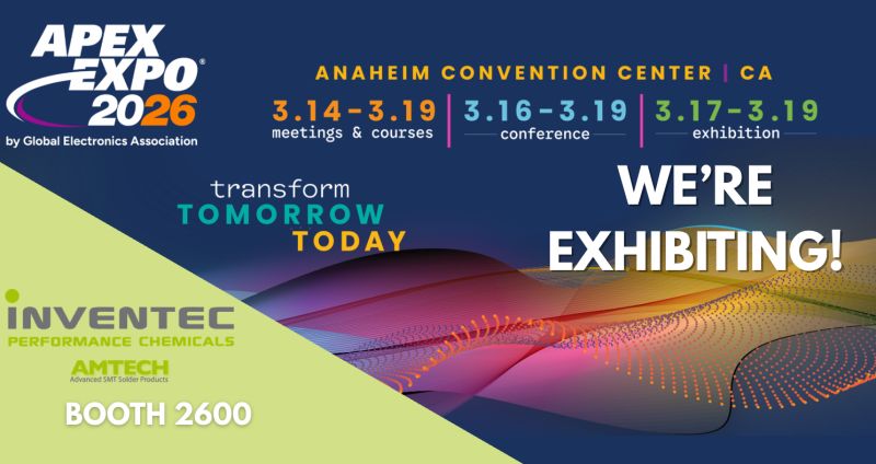 We’re excited to announce that Inventec Performance Chemicals will be exhibiting at APEX EXPO 2026!