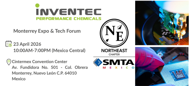 Am 23. April 2026 wird Inventec Performance Chemicals im Cintermex Convention Center vertreten sein und zeigen, wie unsere Löt-, Reinigungs- und Beschichtungslösungen Herstellern helfen, höhere Zuverlässigkeit, Effizienz und Nachhaltigkeit in ihren Produktionslinien zu erreichen.