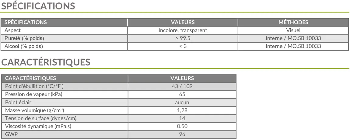 A été développé pour remplacer le trichloréthylène, le NPB et d’autres solvants. Tout en réduisant substantiellement l’impact HSE, le pouvoir dégraissant est à un niveau équivalent.