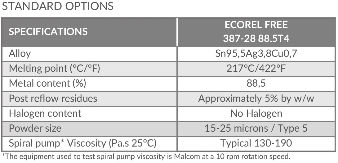 ECOREL FREE LT 140-18Is especially designed for high volume & complex boards assembly. The paste has a very good pin-in-paste performance within a large process window to achieve flawless, reproducible & stable operation. Furthermore, it shows ideal performance when soldering medium to large boards.